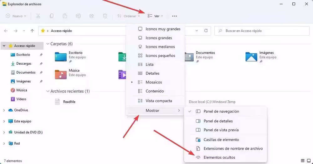 Ver archivos ocultos en Windows.