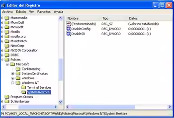 - Restringiendo el acceso a los datos de configuración de Restaurar Sistema en Panel de control -> Rendimiento y mantenimiento ->Sistema ->Restaurar Sistema.