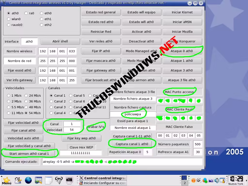3.- Sistema operativo: Yo lo voy a explicar para Linux, pero vale para windows exceptuando que el ataque 0 tiene un cariz diferente ya que solo es posible con un tarjeta con el chipset atheros y compatible con el CommView 5.2 para wifi) y por lo tanto si no tenéis una tarjeta con esta compatibilidad hay que esperar que el cliente se autentifique por primera vez. Recordad siempre que no todas las tarjetas tanto en linux como en Windows permiten el ataque 0.