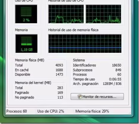 Hoy, con una sencilla práctica vamos a ver que no es así y que cuando Windows Vista necesita recuperar esa memoria que ha guardado en caché lo hará sin ningún problema.
