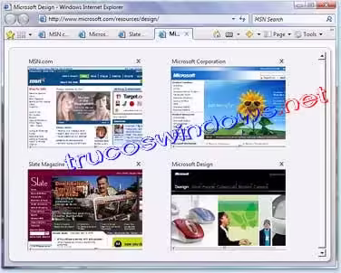 Se pueden abrir varios sitios Web en una ventana de Internet Explorer gracias a la función de exploración con fichas. Vea las imágenes en miniatura de todas las fichas abiertas en una sola ventana. Organice varias fichas en un grupo y guárdelo como favorito.